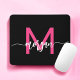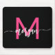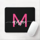 Hot Pink Black Modern Script Girly Monogram Name Mouse Pad