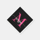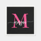 Hot Pink Black Modern Script Girly Monogram Name Napkins