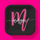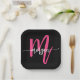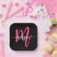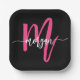 Hot Pink Black Modern Script Girly Monogram Name Paper Plates