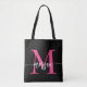 Hot Pink Black Modern Script Girly Monogram Name Tote Bag