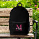 Hot Pink Black Monogram Girl's Back to School Printed Backpack