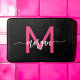 Hot Pink Black Monogram Girl's Dorm Room Bath Mat