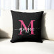 Hot Pink Black Monogram Girl's Dorm Room Throw Pillow