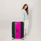 This simple, elegant hot pink hard-sided suitcase with your first name in a trendy script font in white, your first initial in a modern cap font in black, and your full name in CAPS in white is perfect for you. It's stylish and trendy and yet very classic. It will be super easy to spot on the baggage carousel.