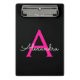 Hot Pink Black Script Girly Monogram Name Mini Clipboard