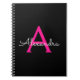 Black and Hot Pink Simple Script Monogram Name Spiral Notebook Planner. This makes the perfect sweet 16 birthday, wedding, bridal shower, anniversary, baby shower or bachelorette party gift for someone that loves glam luxury and chic styles.
