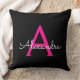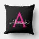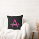 Hot Pink Black Script Girly Monogram Name Throw Pillow