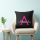 Black and Hot Pink Script Monogram Name and Initial Pillow. The pillow makes the perfect sweet 16 birthday, wedding, bridal shower, baby shower or bachelorette party gift for someone decorating her room in style.