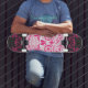Hot Pink Black Sugar Skull Roses Gothic Grunge Skateboard Deck