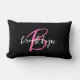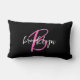 Hot Pink Black White Script Monogram Lumbar Pillow
