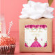 This elegant and glamorous birthday party thank you sticker features a beautiful princess with blonde hair and fair skin in a hot pink ball gown. The text combines handwritten script and modern sans serif fonts for a classy and sophisticated look. The floral arrangements, butterflies and gold confetti create the perfect blend of rustic and chic.