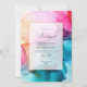 Hot-Pink, Blue and Gold Alcohol Ink Wedding Invitation