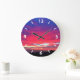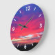 Hot pink blue cloud sunset coastal landscape photo large clock