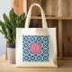 Hot Pink & Blue Geometric Pattern Monogram Tote Bag