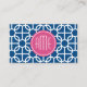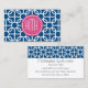 Hot Pink & Blue Geometric Pattern Monograms Business Card