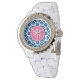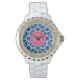 Hot Pink & Blue Geometric Pattern Monograms Watch