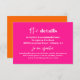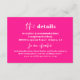 This is an bold, modern wedding details card featuring a beautiful calligraphy font and a hot pink background. All colors are editable. // For matching designs, search "FALLON" in the Sincerely By Nicole Zazzle store. * If you like this design but don't see it available for something you are looking for, please reach out to me any time :)