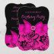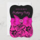 Hot Pink Bow Black Damask Birthday Party Invitation