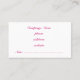 A hot pink color scheme decorates this professional business card. Customize this modern business card to suit your needs. Change the text, font size, etc... Add or delete text. The design is from original art. Use this professional business card for a boutique, jewelry, counseling, graphic design, event planner, bakery, florist, cosmetologist, appointments, hair stylist, salon, spa, nail salon, home decor, interior design, musician, etc...