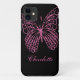 A hot pink butterfly in fancy filigree accents your name on this iPhone case.