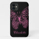 A hot pink butterfly in fancy filigree accents your name on this iPhone case.