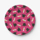 Hot Pink Cap Diplomas Pattern Graduation Party Paper Plates
