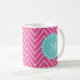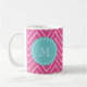 Hot Pink Chevron Pattern | Teal Monogram Coffee Mug