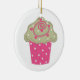 A sweet cupcake in a hot pink liner with white polka dots. Swirls and baby hearts on the top.