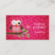 Cute owl sitting on a branch of tree. Cute bright pink floral pattern on the background. Some elements by Cherry Clipart.