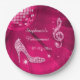 Women's personalized, elegant custom Retirement celebration paper plates. Beautiful hot pink templates for a woman's retirement party. These plates have a funky retro disco mirror ball, glamorous printed image rhinestones / diamonds glitter, sequins, jewels sparkle high heels stilettos shoes, and glittery musical note / music note with sparkles on a classy hot pink with white lights and sparkles background. Chic, cute, girly, modern paper plates with trendy, fashionable colors. These cool, groovy, stylish, sophisticated, pretty party plates are decorated / printed on one side only. Perfect plates for dinner dance dancing event parties. PLEASE NOTE: All products on Zazzle have flat printed images. If you need any assistance customizing your product please contact me through my store and I will be happy to help.