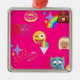 hot pink emoji metal ornament