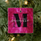 Hot Pink Faux Leather Monogram Photo Ceramic Ornament