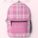 Hot Pink Feminine Typographic Name Girly Plaid Printed Backpack
