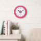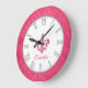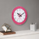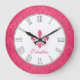 Hot pink fleur de lis damask name wall clock