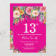 Hot Pink Floral 13th Birthday Invitation