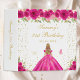 This elegant and glamorous birthday binder is perfect as a party planner, photo album or guest book. The design features a beautiful princess with blonde hair and fair skin in a hot pink ball gown. The text combines handwritten script and modern sans serif fonts for a classy and sophisticated look. The floral arrangements, butterflies and gold confetti create the perfect blend of rustic and chic.