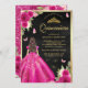 Hot Pink Floral Butterfly Black Gold Quinceanera Invitation