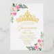 Quinceanera Invitation Tiara Hot Pink Flowers Gold Foil Invitation