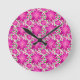 Hot Pink Floral Seamless Pattern Round Clock