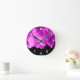 Hot pink flower petals on black round clock
