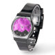 Hot pink flower petals on black watch