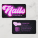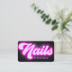 Designed with the contemporary beauty salon in mind, these business cards seamlessly blend functionality with a fashionable aesthetic. The inclusion of a QR code offers a quick and convenient way for clients to access your contact information, book appointments, or explore your portfolio with a simple scan. The bright neon pink backdrop, coupled with chic typography, ensures your card stands out, reflecting the modern and creative nature of your nail salon services. Ideal for nail artists and technicians, these cards are crafted to enhance your professional image and leave a lasting impression.