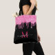 Hot Pink Glitter Drip Monogram Name Black Tote Bag