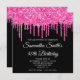 Hot Pink Glitter Drips Black 40th Birthday Invitation