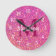 Hot Pink Glitter Girly Glam Monogram Name Round Clock