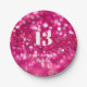 Hot Pink Glitter Glam Personalized 13th Birthday Paper Plates