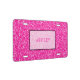 Modern hot pink glitter pattern with white sparks and black double frame. Optional monogram