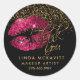 Hot Pink Glitter Lipstick 💋 Thank You Classic Round Sticker