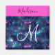 Girly and glam shimmery hot pink, purple, aqua turquoise, green and blue glitter sparkles crowns/ tiaras mermaid princess monogram name and initial magnet. Your custom name is written in black with a hot pink background, and your custom monogram is written in white with an elegant hand lettered script. A perfect birthday or Christmas gift!