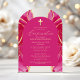 A bold and modern Confirmation invitation featuring a vibrant hot pink and gold agate design. Printed on premium acrylic, this invitation combines contemporary elegance with a striking aesthetic. The rich hot pink tones accented by radiant gold details create a stylish and sophisticated look, making it the perfect choice for a meaningful and memorable Confirmation celebration.